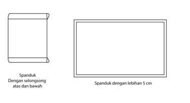 Spanduk dengan finishing selongsong biasanya disesuaikan dengan diameter tiang atau bambu tempat memasangnya, dan ada juga banner dengan finishing lebihan 5cm atau 10 cm namun lebihan ini akan dicharge ke dalam harga anda.